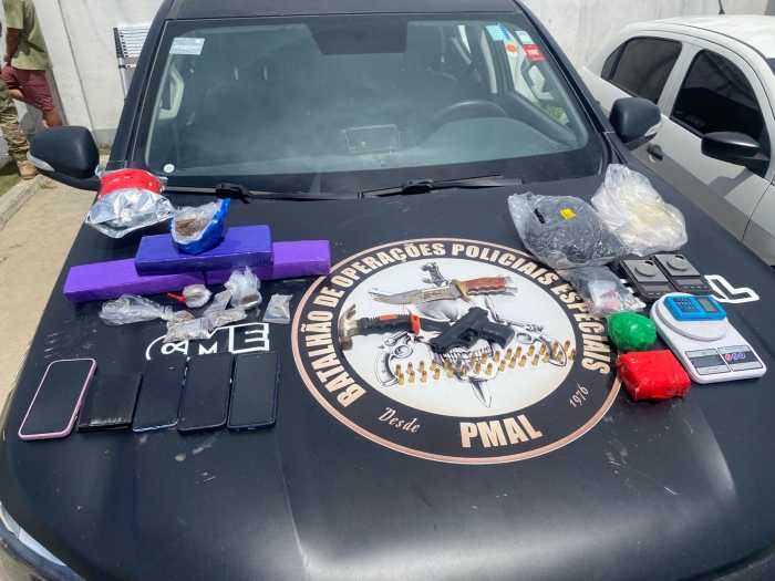 A ação também resultou no recolhimento de um simulacro de pistola, 30 munições de calibre .380, três balanças de precisão e quatro aparelhos celulares.