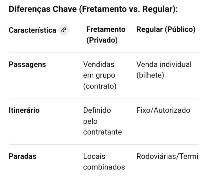 • Regularização: Requer autorização da ANTT (Agência Nacional de Transportes Terrestres) para viagens interestaduais, com emissão do TAF (Termo de Autorização de Fretamento).