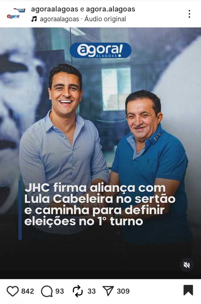 Lula Cabeleira e Ziane Costa, são filiados ao MDB há muitos anos, e tiveram na legenda várias vitórias — e paralelo a esse fato, também são aliados da família Calheiros (pai, filho e Remi). Após as fotografias de Lula Cabeleira e JHC, que foram postadas no Instagram, alguns sites da capital, deu como certo que "ambos os líderes firmaram uma aliança política", mas será❓️