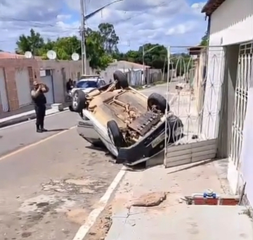 Condutor inabilitado atropela duas pessoas e capota carro no bairro Campo Grande em Delmiro Gouveia